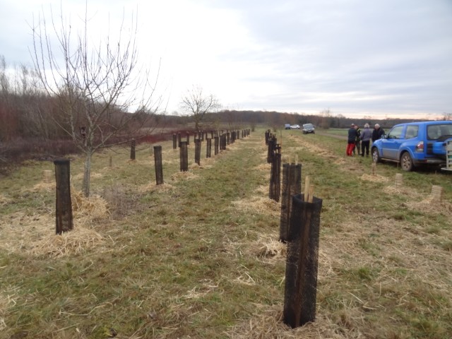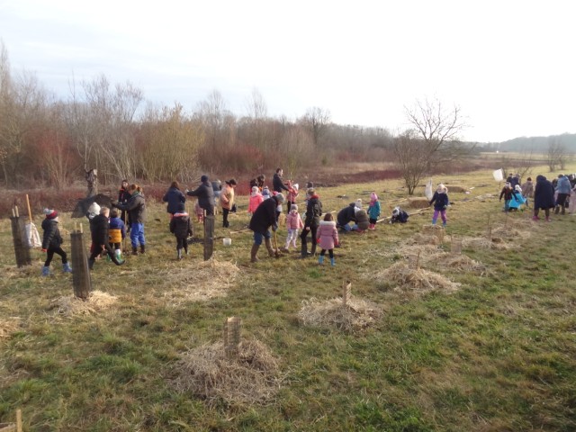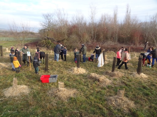 Ces plants en godet permettent d’assurer un taux de reprise exceptionnelle de près de 95%. Les écoliers ont assuré également la mise en place des protections contre les herbivores (campagnols, lièvres, chevreuils) tant pour assurer l’installation de la forêt à long terme. Les écoliers ont également paillé les plants.